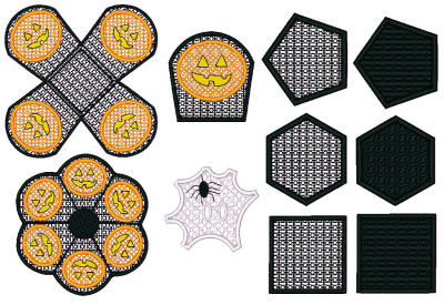 (Click on picture to view a larger version) Copyright 2005, SoftSew, LLC All rights reserved. These whimsical lace designs make it easy to create wonderful keepsakes! Sew them on water-soluble stabilizer, wash the stabilizer away, and you've got lace! The design collection includes coasters, baskets, napkin rings, and Halloween motifs! The coasters will add an festive